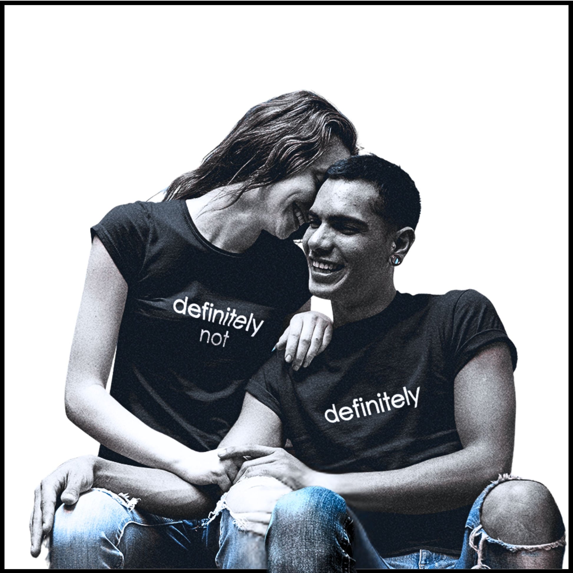 These tees speak for you — a single soft beige-colored word with enough attitude to do the talking. Perfect for expressing your mood, making a statement, or matching (or mismatching) with your partner.