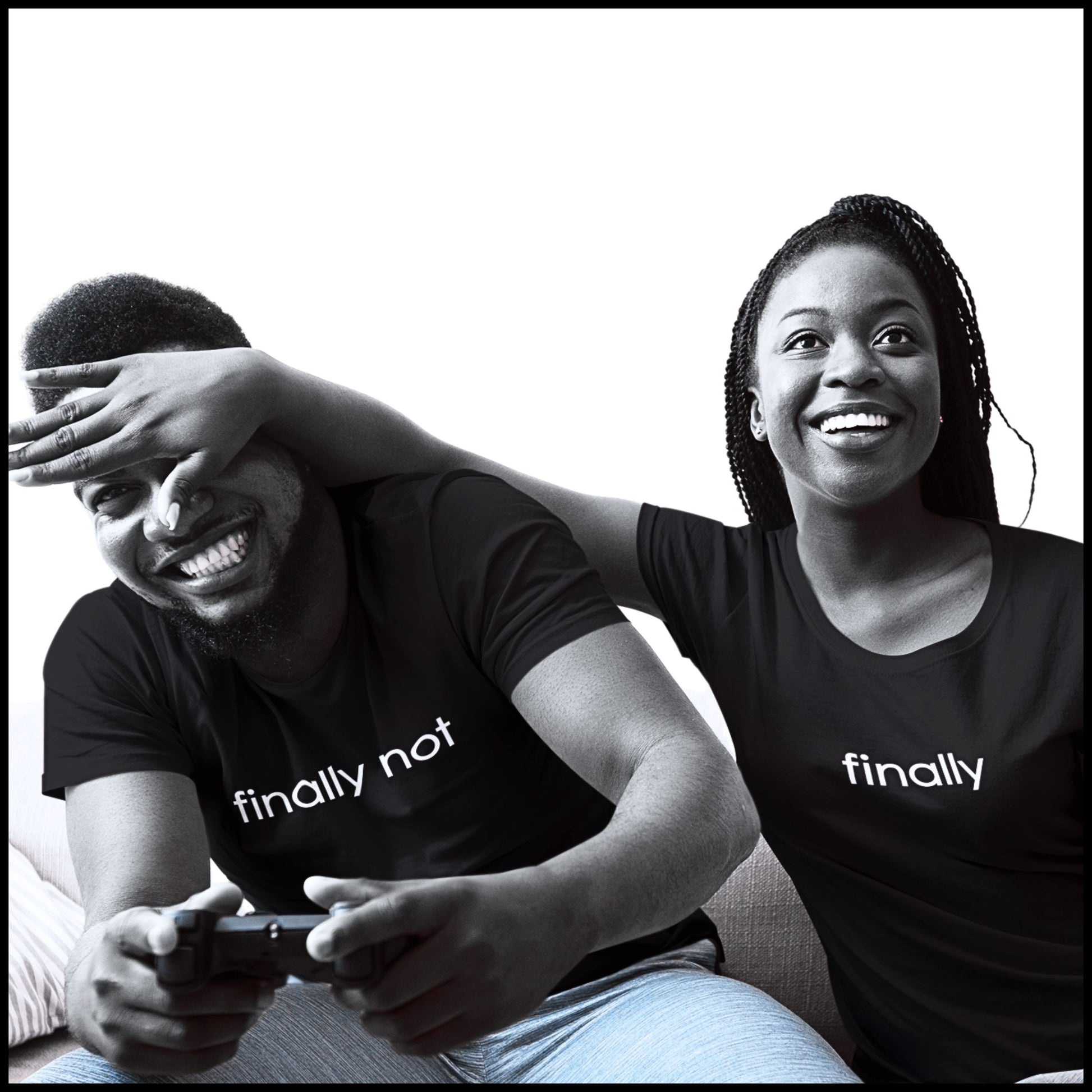 These tees speak for you — a single soft beige-colored word with enough attitude to do the talking. Perfect for expressing your mood, making a statement, or matching (or mismatching) with your partner.